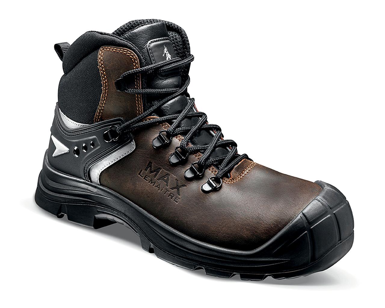 Μποτάκι ασφαλείας Max UK Brown 2.0 του οίκου Lemaitre από δέρμα και εξωτερική ενίσχυση PU στην περιοχή των δαχτύλων.